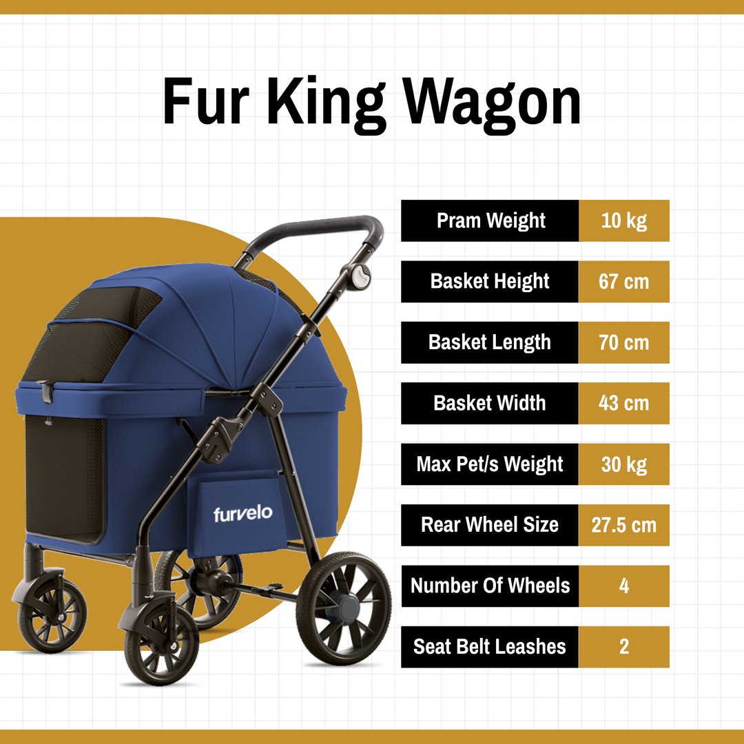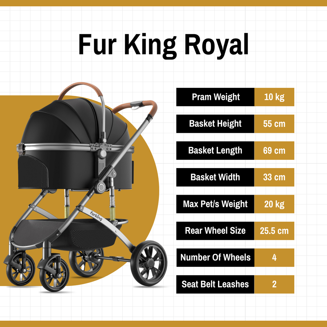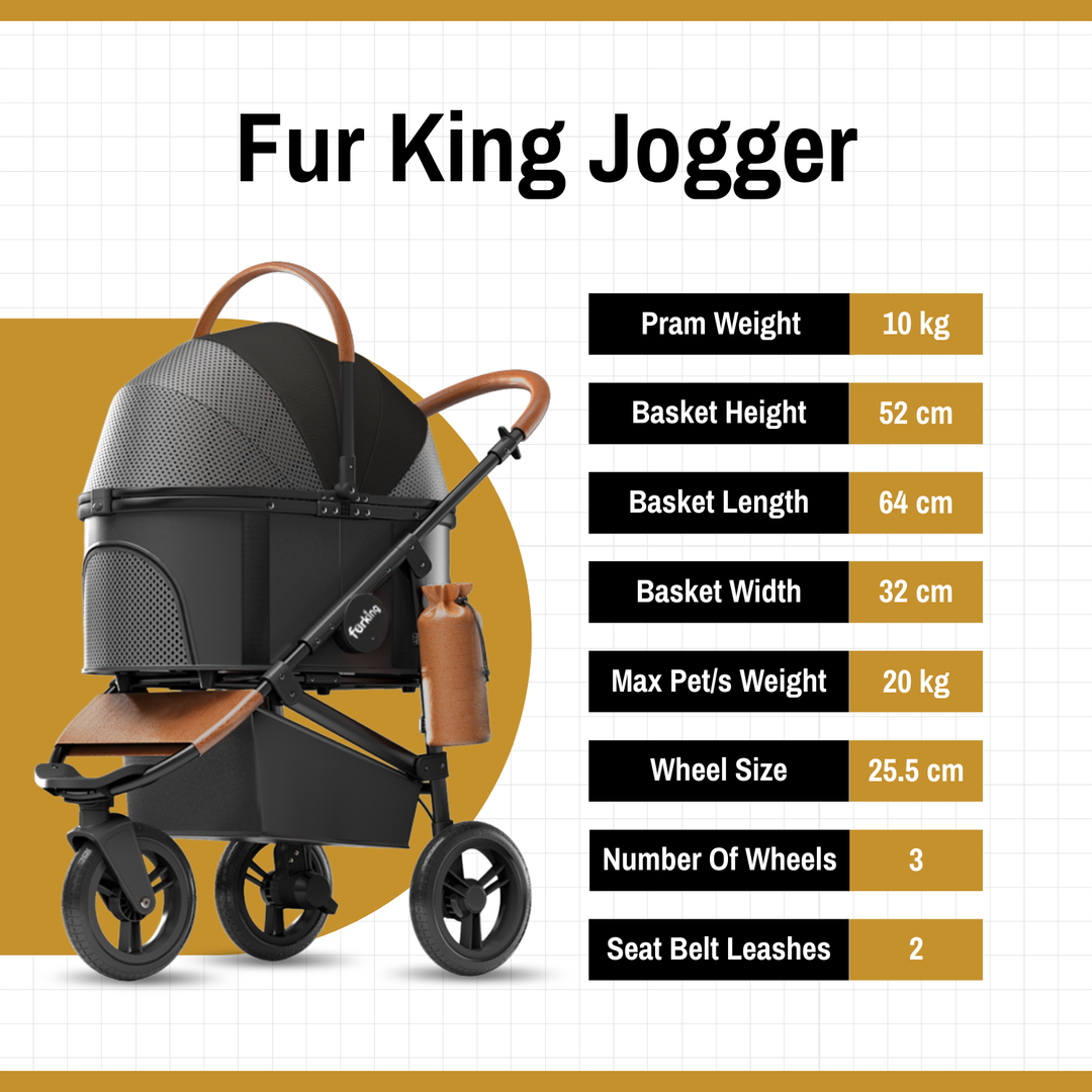 The Fur King Jogger isn't just a dog stroller—it’s your pet’s first-class ticket to outdoor adventure. Whether you're strolling through the park or simply giving your senior dog a break, this pram is designed to glide effortlessly while keeping your furry companion safe, secure, and seriously pampered.
